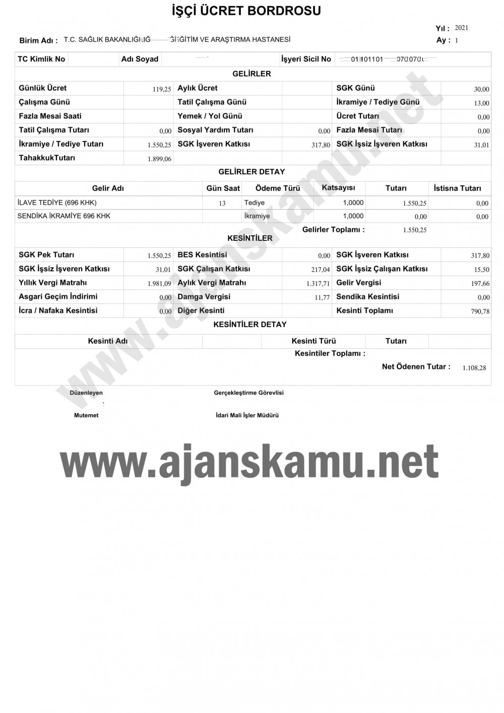 İŞTE OCAK AYI İLAVE TEDİYE BORDROSU