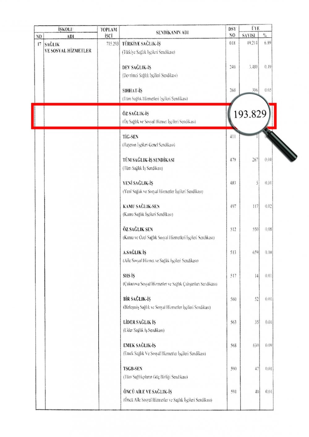Çalışma ve Sosyal Güvenlik Bakanlığı'nın açıkladığı verilere göre; Öz Sağlık-İş sendikası, sağlık ve sosyal hizmet işkolunda 193.829 üye sayısıyla zirvedeki yerini koruyarak kendi işkolunun lider sendikası olmaya devam ediyor.