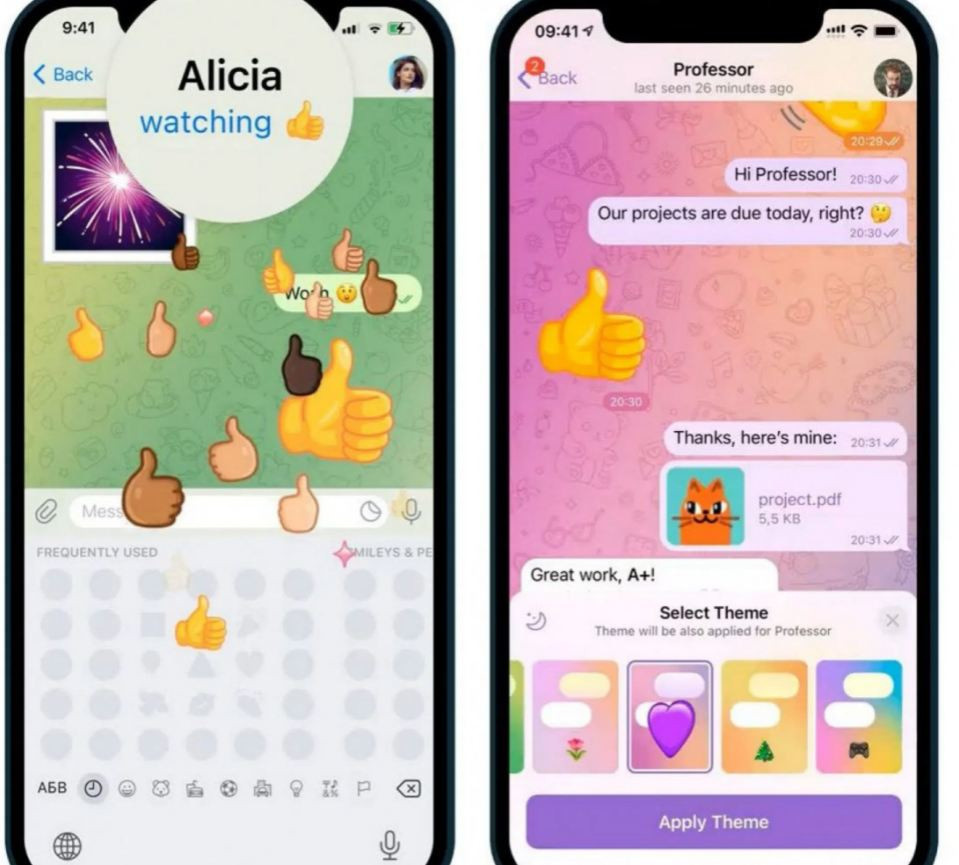 Başka bir kullanıcı odaklı özellik ise sohbet ekranlarına 8 farklı temadan birisini uygulayabilme. Temalarda sohbet balonları, hareketli arka plan veya desenli arka plan gibi detaylar var.