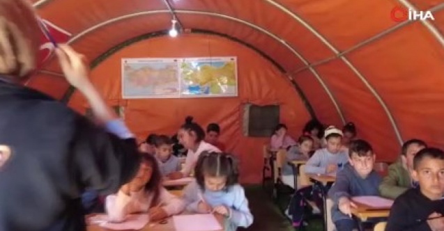 Milli Savunma Bakanlığı tarafından afet bölgesi illerde kurulan Mehmetçik Okulları çocuklara eğitim veriyor.