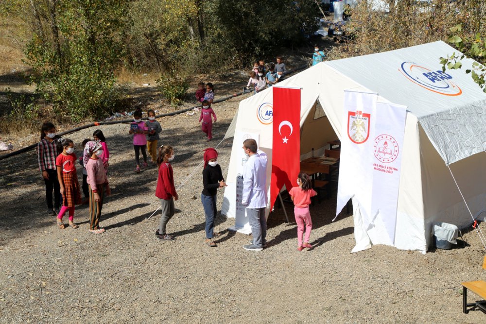 Valinin talimatının ardından çadırda eğitim için ilk ders zili çaldı