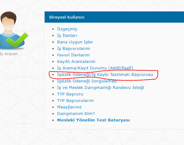 Yukarıdaki linke tıklayın. Açılan sayfada iş arayan kısmından giriş yapın. Giriş yaptıktan sonra karşınıza aşağıdaki ekran çıkacak: