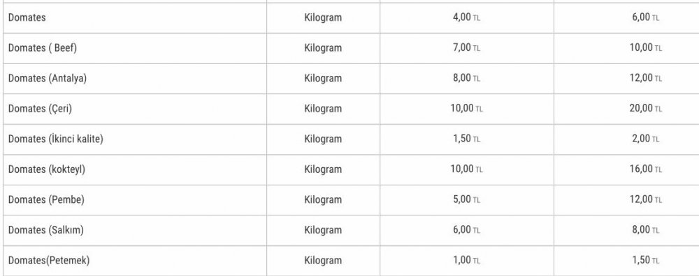 Linkteki fiyatlar(*) İstanbul Hali'nin dünkü meyve toptan satış fiyatları, aşağıdaki de yalnızca domatese ait. Artık pazar ve marketteki fiyatını siz düşünün.