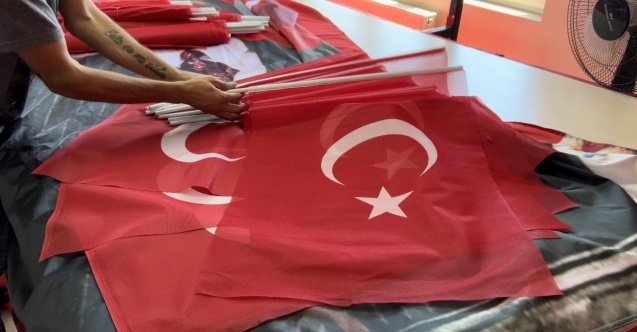 Bayrak atölyesi işletmecisi Ekrem Bitmez, binlerce bayrak siparişi aldıklarını ve yetiştirmek için yoğun bir tempoyla çalıştıklarını söyledi.