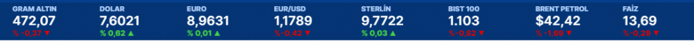 Doviz.com tarafından paylaşılan verilere göre, EURO 8.9 TL'den işlem görürken, İngiliz sterlini ise an itibariyle 9.7 TL'den işlem görüyor. Piyasalarda 12.58 itibariyle gram altın ise 472 TL'den işlem görüyor.