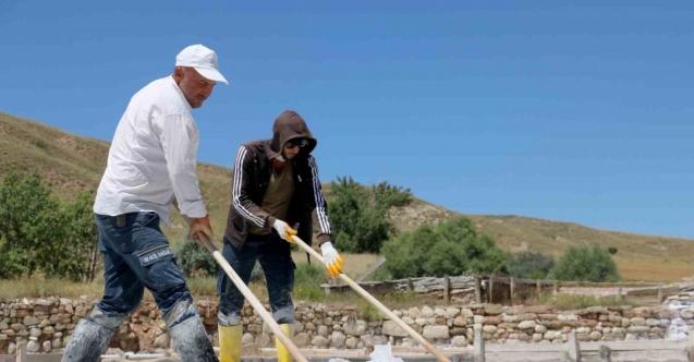 Tuzun oluşumuna müdahalede bulunmadıklarını ifade eden Yılmaz, “Tamamen doğal yöntemlerle oluyor. Normal yeraltı tatlı suları kaya tuzuna uğruyor. Kaya tuzunu eriterek yüzeye tuzlu su olarak çıkıyor. Çıkan tuzlu suyu yaz mevsiminde havuzlara bırakıyoruz. Güneş sayesinde buharlaşma ile tuz oluşuyor. Biz oluşan tuzu kendi ekipmanlarımızla dışarıya çıkmasını sağlıyoruz. Biz sadece oluşumuna yön veriyoruz. 2 ila 3 gün kurutuyoruz, daha sonra paketliyoruz” ifadelerini kullandı.