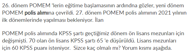 Bütçe görüşmelerinde, 2021 yılında polis alımı yapılacağı açıklaması geldi. POMEM, PAEM ve PMYO polis alımları 2021 yılında olacak.