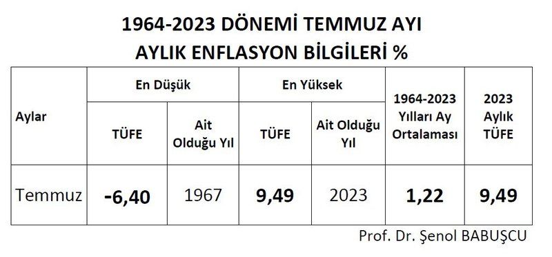 Şenol Babuşcu, son 60 yılın en yüksek Temmuz ayı enflasyonunun 2023 yılında yaşandığını söyledi.