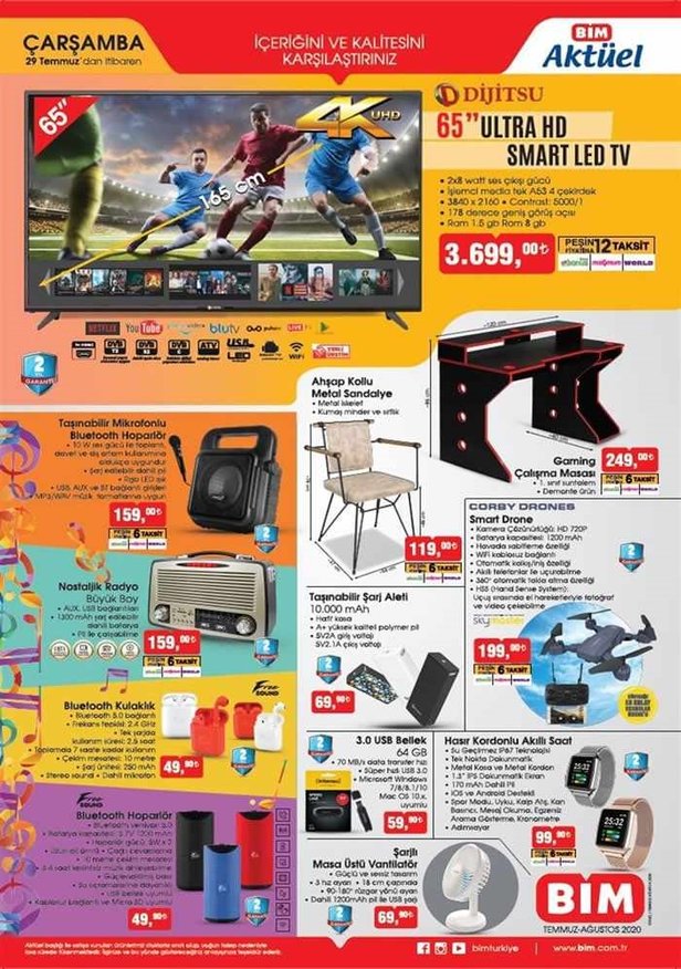 29 Temmuz Çarşamba BİM aktüel kataloğu! 28-29 Temmuz Salı BİM'de gelecek hafta aktüel indirimli ürünler... Elektrikli scooter...
