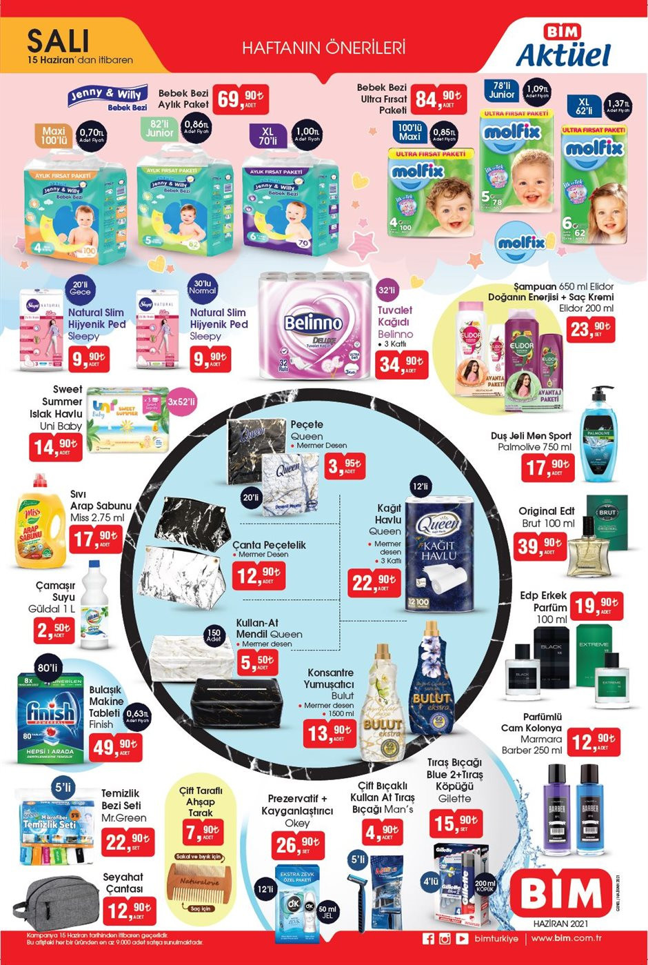 BİM 15 Haziran 2021 aktüel ürünleri satışa çıktı. Haftanın BİM aktüel ürünler kataloğu tam liste halinde yayınlandı 15 Haziran itibariyle BİM marketlerinde yüzlerce ürün indirimli fiyatlarla satışa sunuldu. BİM haftanın aktüel kataloğunda; Jenny&Willy Bebek Bezi, Molfix Bebek Bezi, Belinno Tuvalet Kağıdı, Finish Bulaşık Makine Tableti, Palmolive Duş Jeli, Naturalove Titreşimli Yüz Temizleme Cihazı, Golden Rose Summer Beauty Maskara, Golden Rose Summer Beauty Lipgloss, Naturalove Makyaj Fırça Seti, İnce Piliseli Taç, Dalan Sivrisineklere Karşı elektrolikit’e kadar çok daha fazlası yer alıyor. BİM haftanın tüm aktüel katalog ürünleri... İşte 15 Haziran 2021 BİM aktüel ürünler kataloğu...