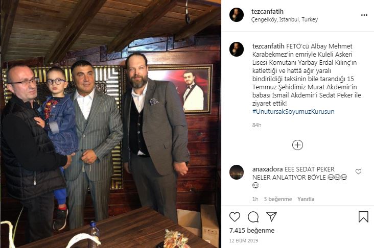 Tezcan'ın Instagram hesabında Peker ile birlikte gerçekleştirdiği bir ziyaretten fotoğraf da var.