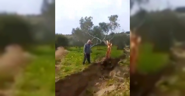 Hatay'da, kırılan fay hattı ikiye böldüğü zeytin ağacının parçalarını 10 metre uzağa taşıdı.