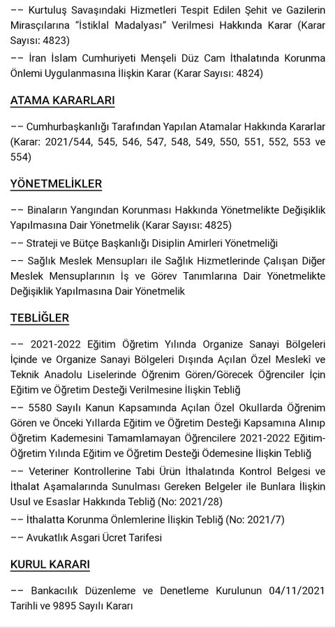 Resmi gazetede bir çok atama kararı, sğalık çalışanlarını ngörev tanımı ile Organize sanayi bölgleerindeki meslek liselerinde okuyan öğrencilere destek verilmesi gibi çok önemli konular yer alıyor.