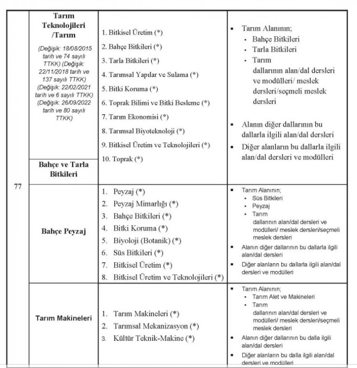 Milli Eğitim Bakanlığı, öğretmenlik alanlarının atama ve ders okutma esaslarını düzenledi. Yapılan düzenleme ile Tarım Teknolojileri/Tarım/Tarım Makineleri alanı ile Tarım Teknolojileri/Tarım/Bahçe Peyzaj alanının mezun olduğu yükseköğretim programları ve fakülte bilgileri yeniden düzenlendi.