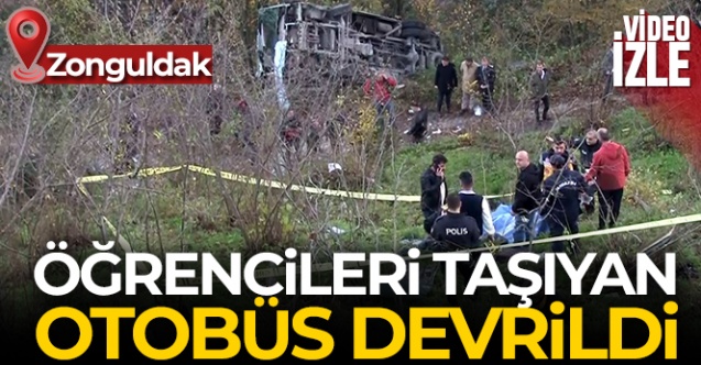 Zonguldak'ta öğrencileri taşıyan otobüs devrildi