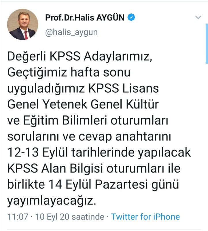 ÖSYM Başkanı Halis AYGÜN açıklama yaptı ve Soruların ve cevap anahtarlarının 13 Eylül'de yapılacak olan ÖABT sınav soru ve cevapları ile birlikte 14 Eylülde açıklanacağını ifade etti.