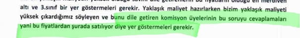 “…Yaklaşık maliyeti hazırlarken bizim yaklaşık maliyeti yüksek çıkardığımızı söyleyen ve dile getiren komisyon üyelerinin bu soruyu cevaplamaları yani bu fiyattan şurada satılıyor diye yer göstermeleri gerekir…”