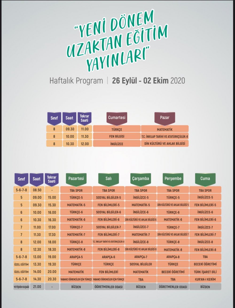 TRT EBA TV 3-9 Ekim ders programı yayımlandı! TRT EBA ilkokul, ortaokul, lise ders saatleri yayaınlandı. İşte yeni haftanın ders programı