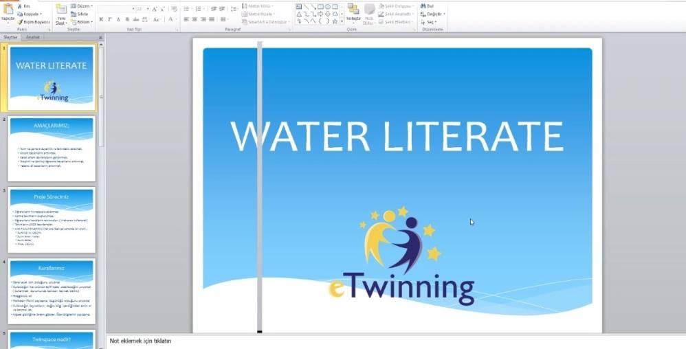 Dünya’da suyun önemine ve su kullanımına dikkat çekmek için başlatılan, su kıtlığı, su ve enerji ve su ve sanat ilişkisi gibi üç farklı başlıktan oluşan projeye dört ülkeden birçok öğrenci katıldı. Katılan bütün öğrenciler Web 2.0 araçları kullanarak İngilizce logo, afiş, sunumlar, videolar ve makaleler hazırladı. Proje kapsamında tüm ortak okullar ülkelerinin, yaşadıkları şehrin ve okullarının İngilizce olarak tanıtımını hazırladı, webinar ve seminerler düzenledi ve bunları E- twinning portalında ve sosyal medyada yayınladı.