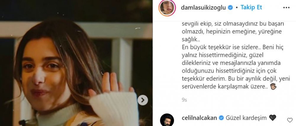 Genç oyuncu instagram hesabından Kardeşlerim dizisiyle ilgili macerasının noktalandığını duyurdu. Bu açıklama ile dizi hayranları ikinci bir ayrılık şoku yaşamış oldu. Damlasu İkizoğlu, yayınladığı açıklamada şu ifadelere yer verdi: