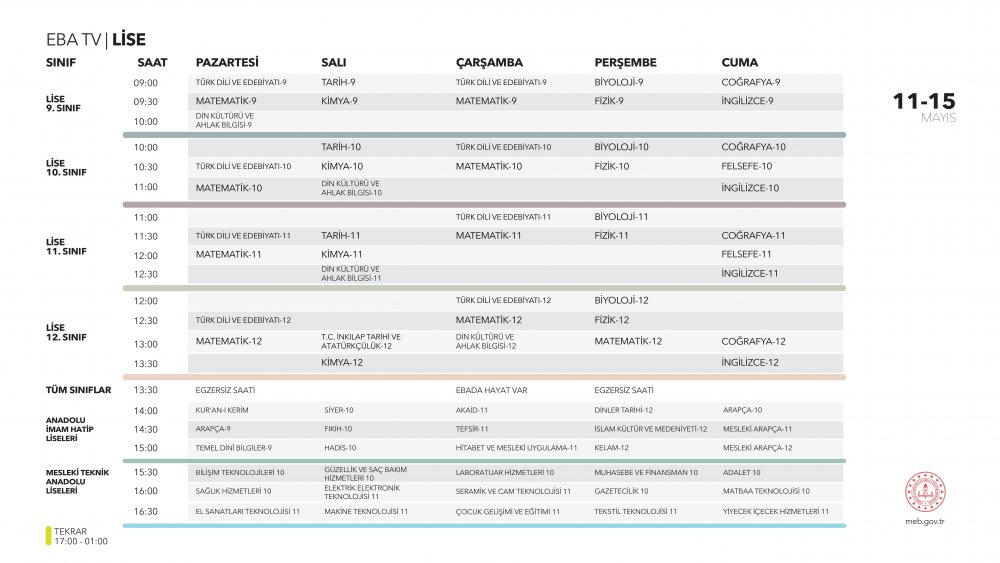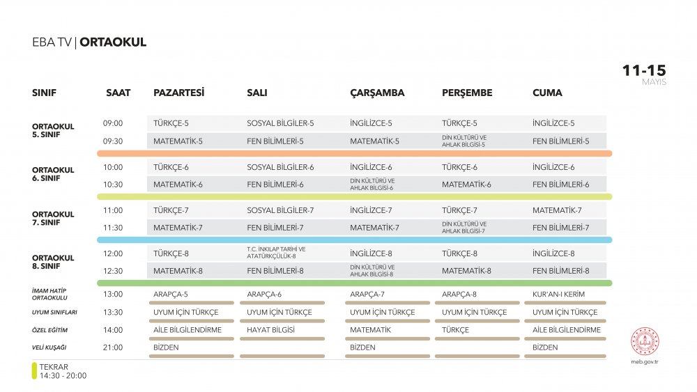 İşte EBA TV 11-15 Mayıs Haftalık Yayın Akışı: