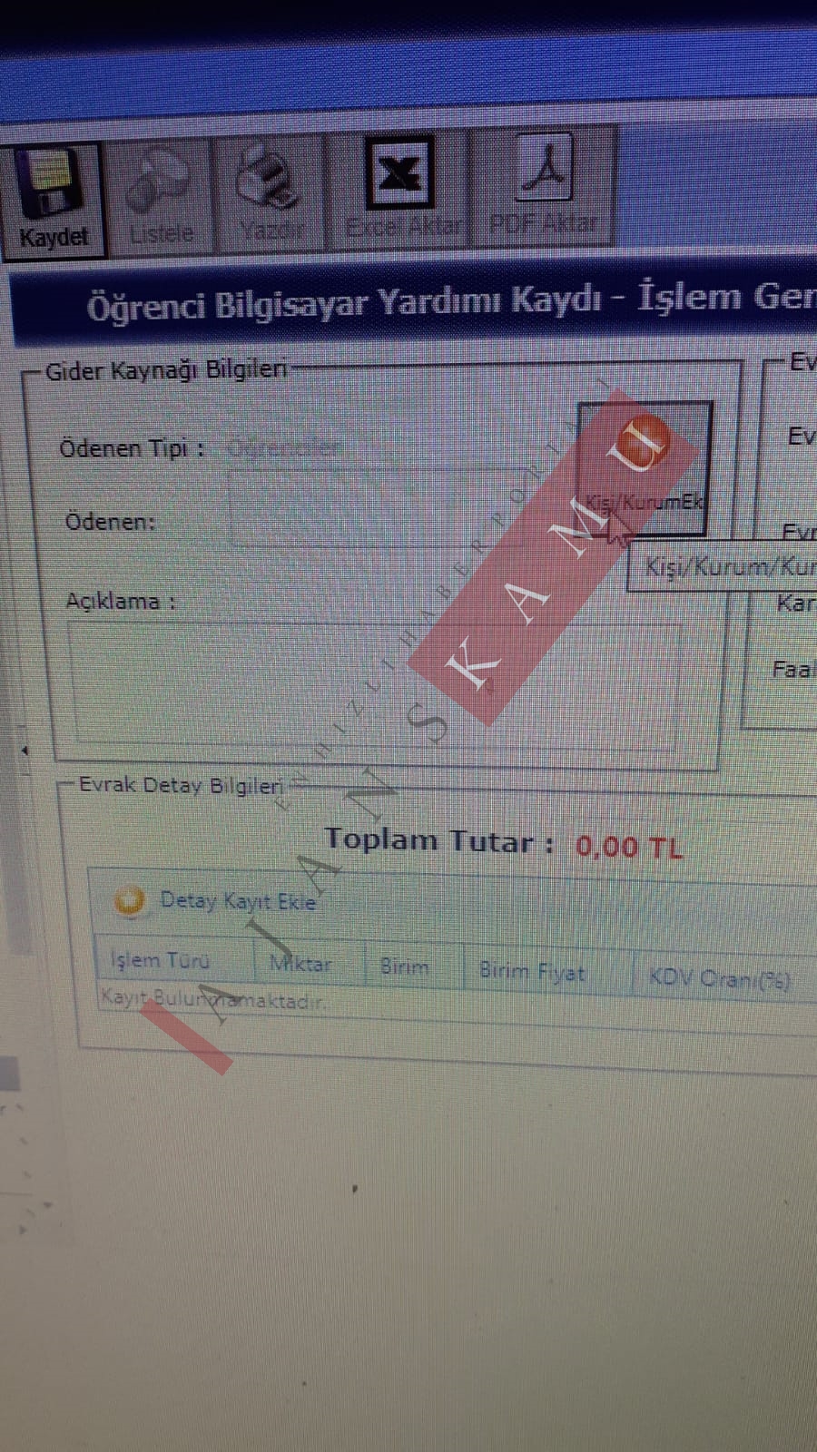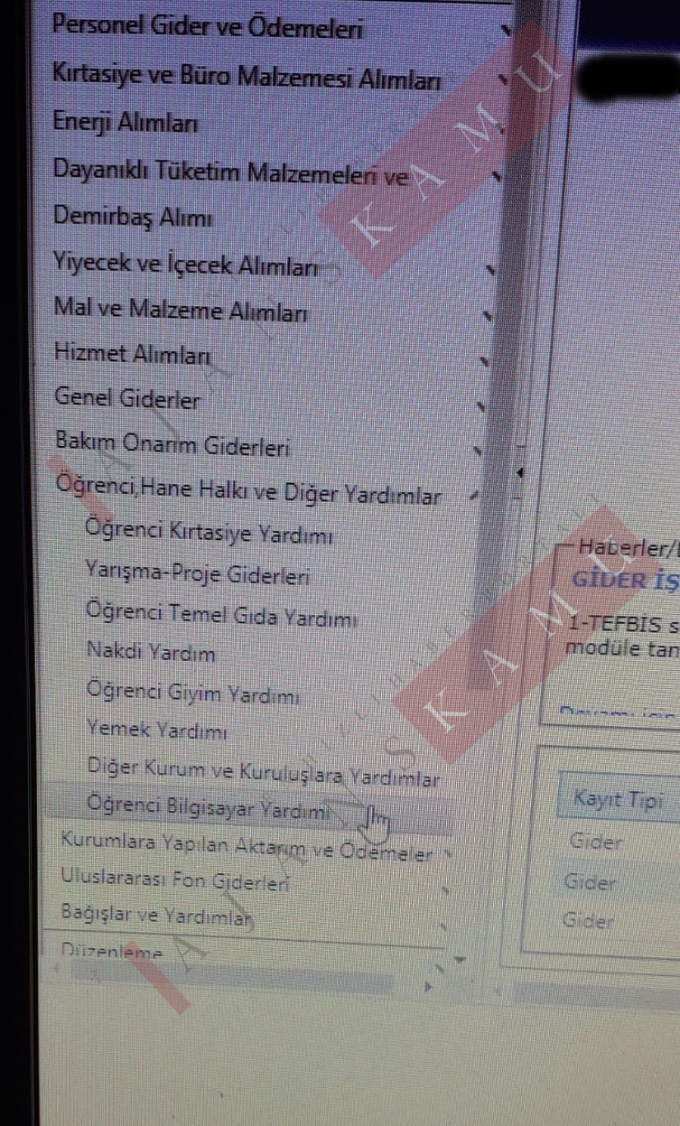 Tabletler TEFBİS sisitemine giriş yaptıktan - gider işlemleri-öğrenci hane halkı yardımlar-bilgisayar yardımı ekranında görülebilmektedir.