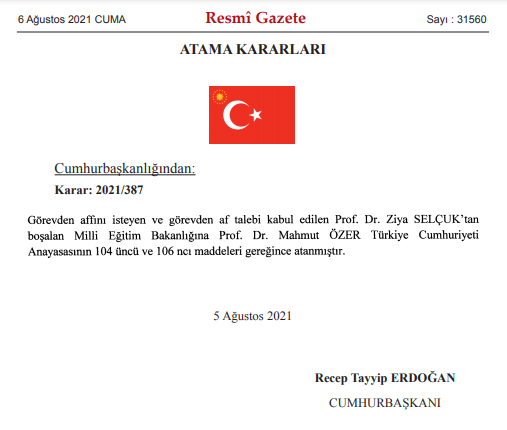 MEB'de İki Bakan Yardımcısı Görevden Alındı . Kararlar resmi gazetede yayımlandı.