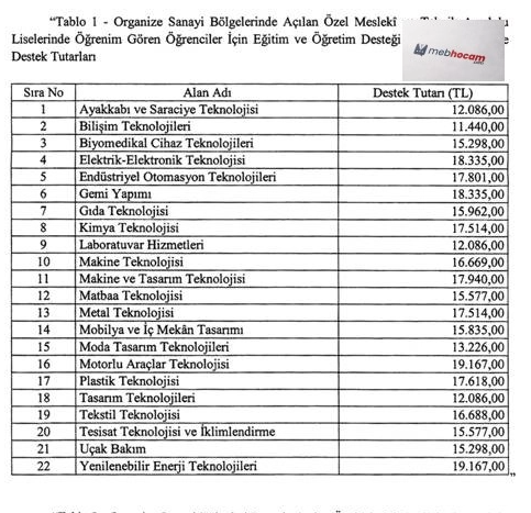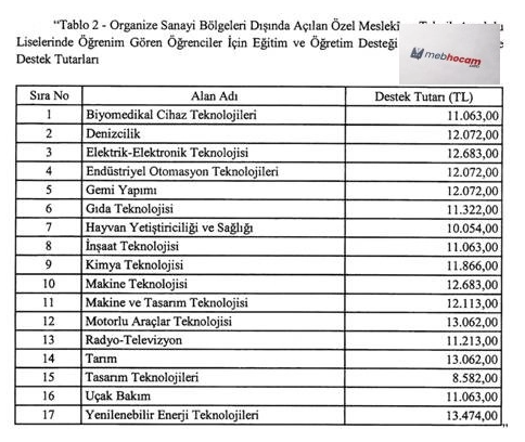 İşte Özel Meslek liselerinde öğrenim gören öğrencilere ödenecek destek ödemelerinin güncel tutarları :