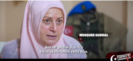 Şehit Annesi Menşure GÜRDAL ise taziye için geldiğinizde "elinizde evraklarla siz söylediniz burada bir okula isminin vermek istiyoruz diye " ben mi size söyledim, siz söylediniz ama yapmadınız. Ben de oğulcağızımın isminin yaşaasını istiyorum." diyerek gözyaşları döktü.
