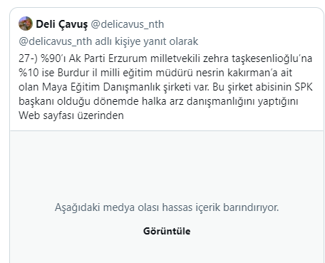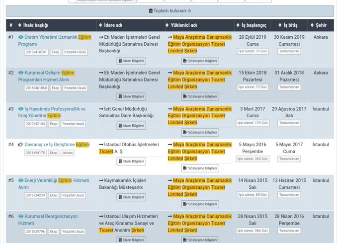 CHP Şahinbey Belediye Meclis üyesi Uğur Kalkan, suç örgütü lideri Sedat Peker gündeme getirdiği rüşvet iddialarında adı geçen AKP Erzurum Milletvekili Zehra Taşkesenlioğlu ve Burdur İl Milli Eğitim Müdürü Nesrin Kakırman’ın ait olan Maya Eğitim Danışmanlık Şirketi'nin kamu kurumlarından aldığı ihaleleri paylaştı.