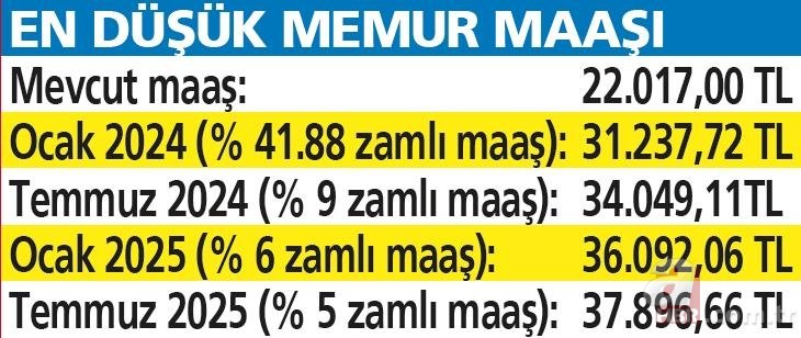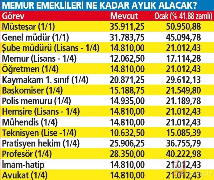 İŞTE MEMUR VE MEMUR EMEKLİLERİNİN ZAMLI MAAŞ TABLOSU