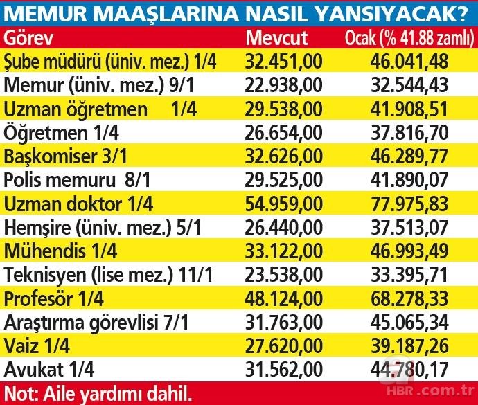 Peki zam teklifi memur maaşlarına nasıl yansıyacak? Kim ne kadar maaş alacak? İşte meslek meslek yeni maaş tabloları.