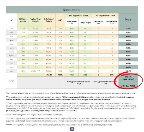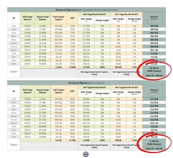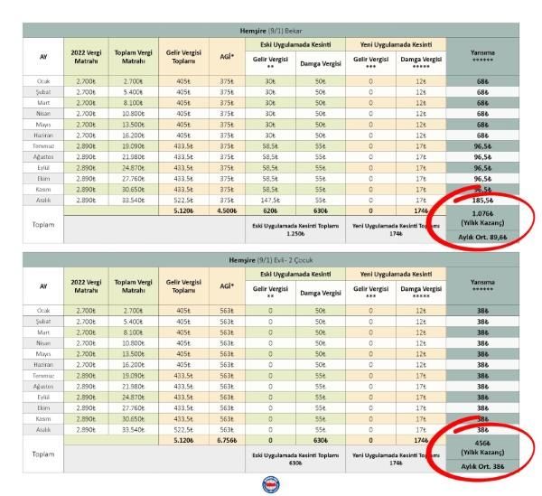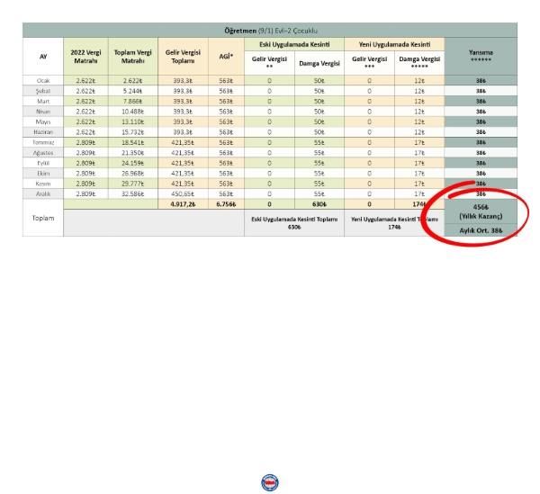 *Yeni uygulamada AGİ tutarları kullanılmayacak olup, yukarıdaki tablodaki AGİ tutarları yalnızca eski/yeni uygulama karşılaştırması yapılması amacıyla verilmiştir.