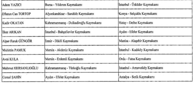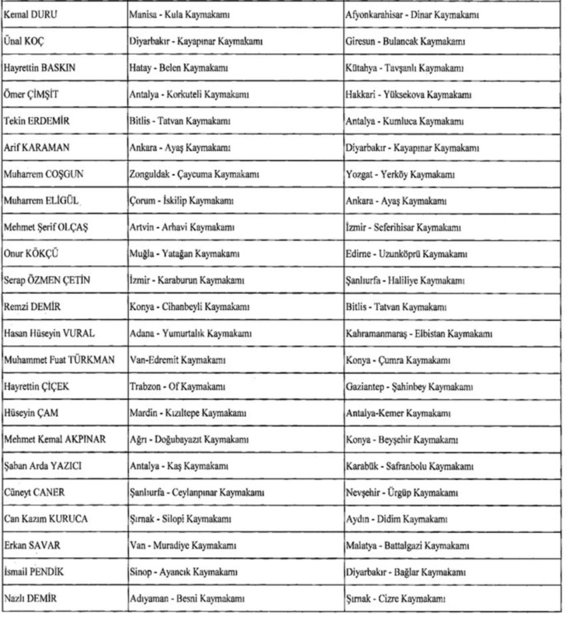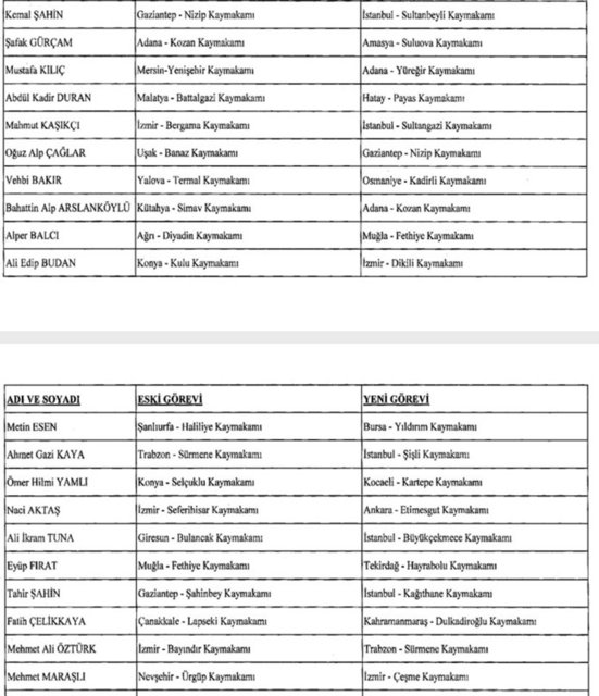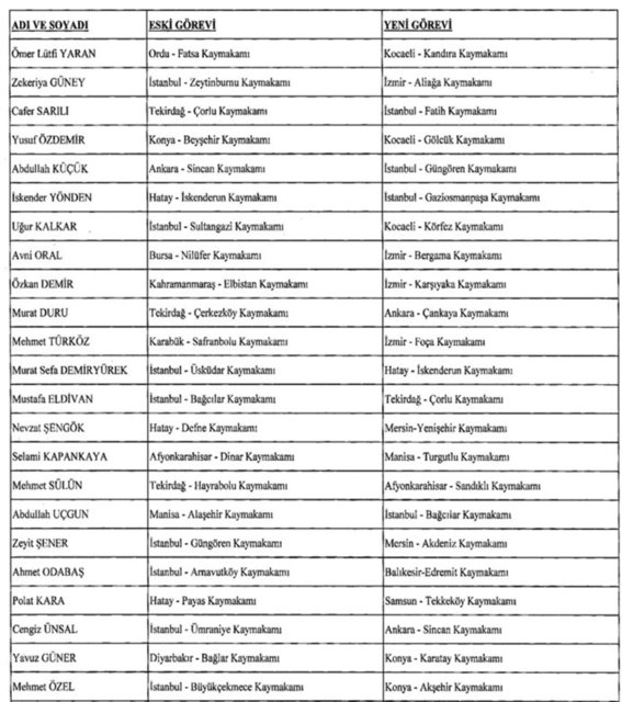 İstanbul'da 12, Ankara'da 4, İzmir'de ise 10 kaymakamın görev yerleri değiştirilirken, kayyumluk görevi de icra eden kaymakamlardan 12'si farklı görevlere atandı, yerlerine yeni kaymakamların ataması yapıld