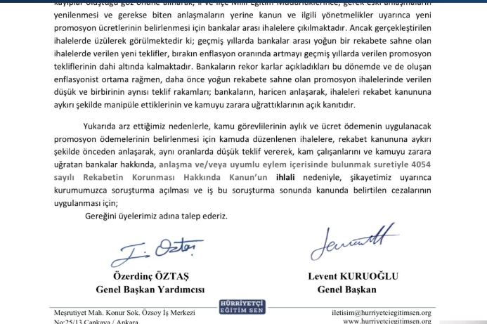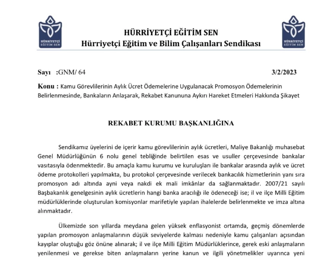 Kamu görevlilerinin aylık ücret ödemelerine uygulanacak promosyon ödemelerinin belirlenmesinde, bankaların anlaşarak, rekabet kanununa aykırı hareket ettikleri gerekçesiyle Rekabet Kuruluna şikayette bulunduk.