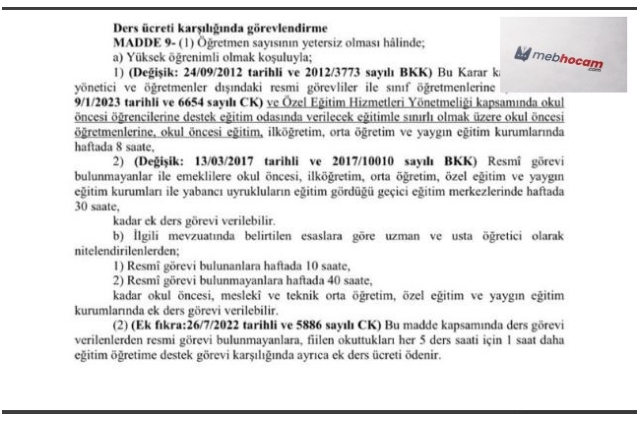 Milli Eğitim Bakanlığı bünyesinde görevlendirilen ücretli öğretmenlerin haftalık 40 saate kadar ders verebilmeleri sağlandı..
