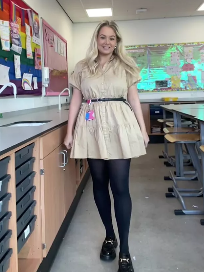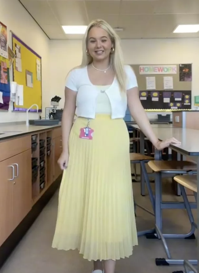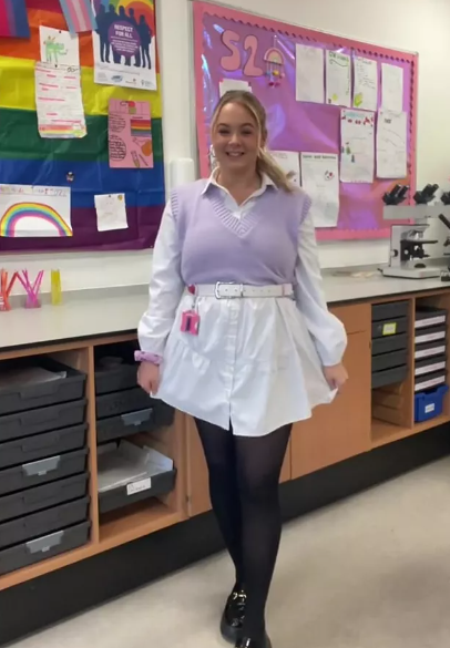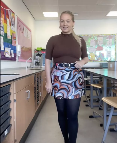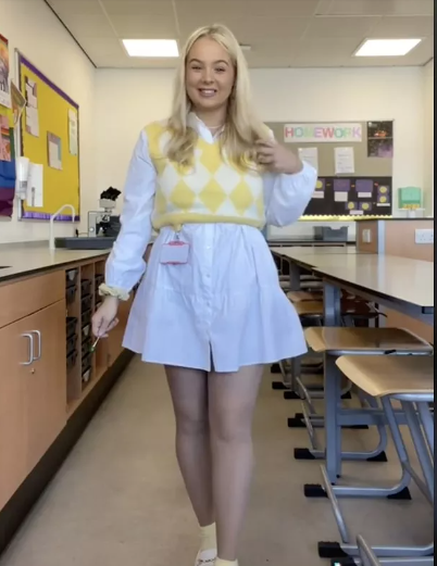 Ortaokulda biyoloji öğretmeni olan Victoria, TikTok hesabında "öğretmene kombinleri" videoları yayınlıyor.