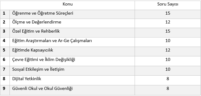 Uzman Öğretmenlik Sınavı konu ve soru dağılımı şöyle;