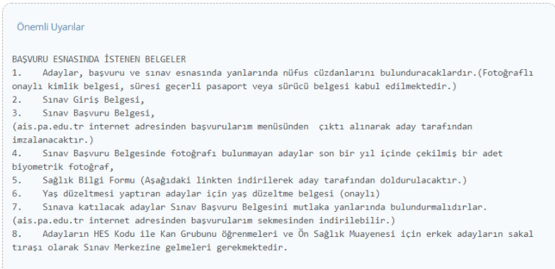 "27. Dönem POMEM Giriş Sınavı kapsamında, aday değerlendirme ve seçme sınavı ön saglık kontrolüne katılacak olan adaylar sınav merkezlerini, T.C. kimlik numaraları ve e-Devlet kapısı şifreleri ile www.pa.edu.tr internet adresinden sorgu yapmak suretiyle öğreneceklerdir. İlan edilen sınav tarihi ve sınav merkezinde adaylara ön sağlık kontrolü yapılacaktır. Ayrıca adaylara posta yolu veya değişik iletişim araçları ile sınav giriş belgesi gönderilmeyecektir. İnternetten yapılan sınav giriş duyurusu tebliğ niteliğindedir.