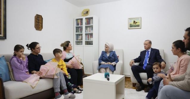 Cumhurbaşkanı Recep Tayyip Erdoğan, eşi Emine Erdoğan ile birlikte depremzede aileyi ziyaret etti.