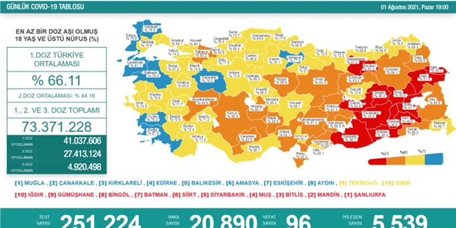 Sağlık Bakanlığı 1 Ağustos 2021 tarihli vaka sayılarını açıkladı.