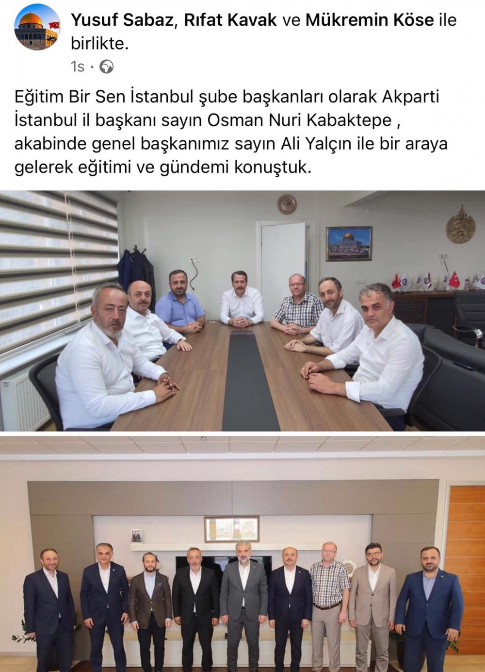 EBS 5 Nolu Şube Başkanı Yusuf SABAZ'ın sosyal medya hesabından "Eğitimi ve gündemi değerlendirdik" şeklinde yaptığı paylaşım ; "Eğitim Bir Sen'in Ali YALÇIN Başkanlığında tüm şube başkanlarıyla birlikte Ömer YAHŞİ'nin İstanbul İl müdürü olması için tam saha pres mi yapılıyor?" şeklinde değerlendirilmesine neden oldu.