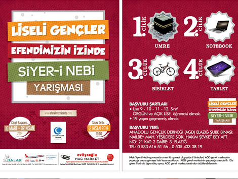 Anadolu Gençl,k Derneği AGD'nini geleneksel hale gelen Siyeri Nebi Yarışması Efendimizin izinde Trürkiye Genelinde yarışması bugün gerçekleştirildi. www.efendimizinizinde.com