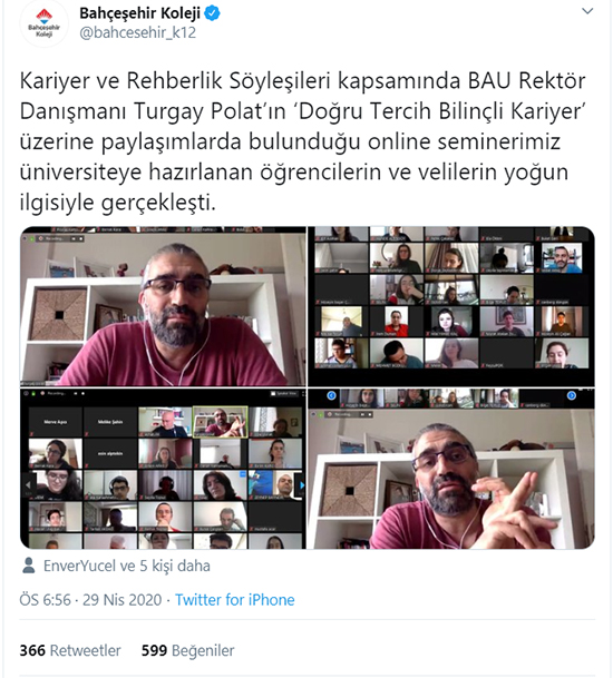 Turgay Polat, bu açıklamayı Bahçeşehir Kolejinin 29 Nisan'da düzenlediği "Kariyer ve Rehberlik Söyleşileri"nde yaptı.