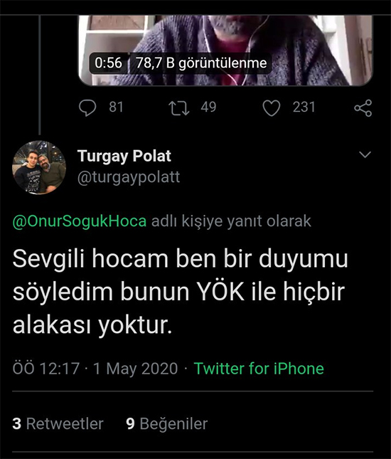 Turgay Polat daha sonra yaptığı bir diğer açıklamada ise "Sevgili hocam ben bir duyumu söyledim bunun YÖK ile hiçbir ilgisi yoktur" dedi.
