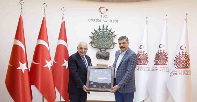 TFF Başkanı Mehmet Büyükekşi, bir dizi ziyaret için geldiği Çorum’da ilk olarak Çorum Valisi Mustafa Çiftçi’yi ziyaret etti. Valilik ziyareti sonunda Büyükekşi, gazetecilerin sorularını yanıtladı. Daha önce de Çorum’a ziyarette bulunduğunu açıklayan Büyükekşi, “Yaklaşık 7-8 yıl oldu. O günden bugüne bayağı bir değişim olmuş. O zaman ihracatı 1 milyar doların altındaydı. Şimdi 1 milyar doları geçmiş. Son derece sevindirici. Sporda, Çorumspor önemli bir yol aldı. Şuanda şampiyonluğa oynayan takımlardan bir tanesi. Onun içinde kendilerini tebrik ediyoruz. Çorum’da olmaktan mutluluk duyuyorum” ifadelerini kullandı.