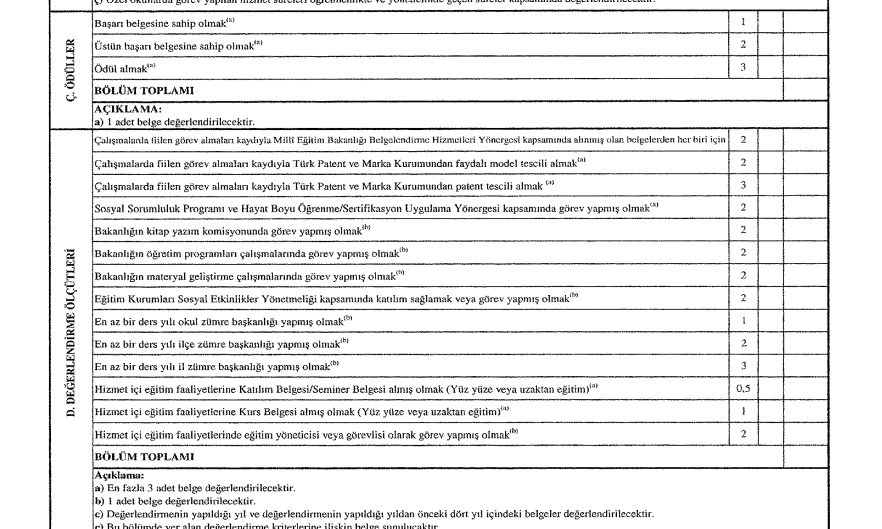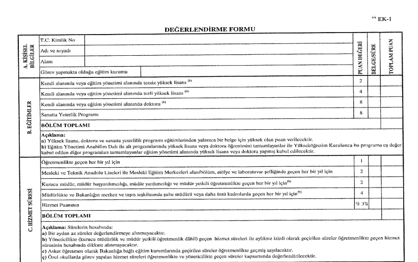 Yönetici Atamada İşte Yeni EK-1 Değerlendirme Formu