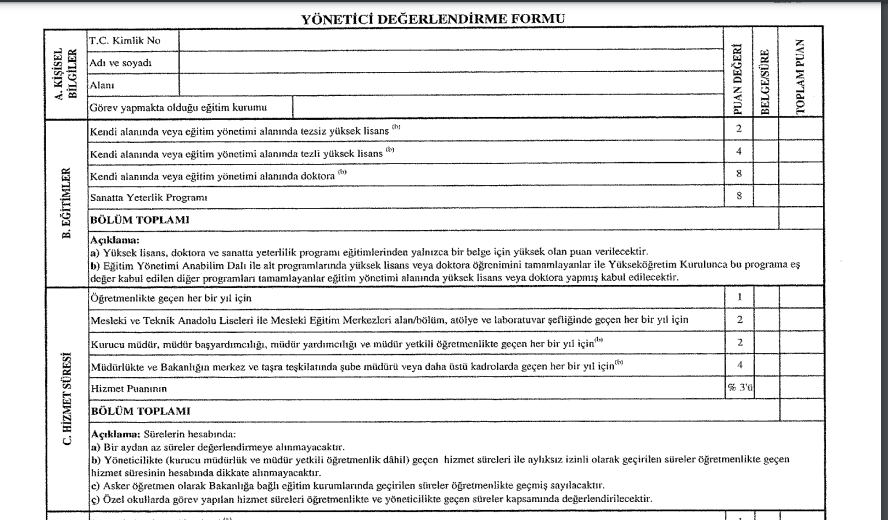 Yeni Yönetici Atamada İşte Yeni EK-1 Değerlendirme Formu belli oldu.