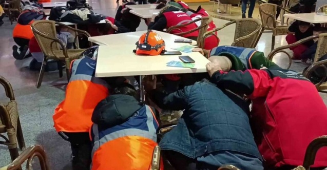 Zonguldak’ta 23 yıl önce Düzce’de yaşanan depremin yıldönümünde "Çök-Kapan-Tutun" tatbikatı gerçekleştirildi. Bir restoranda çorba içen vatandaşlar tatbikat anına denk gelince masaların altına girerek tatbikat boyunca bekleyişlerini sürdürdü.